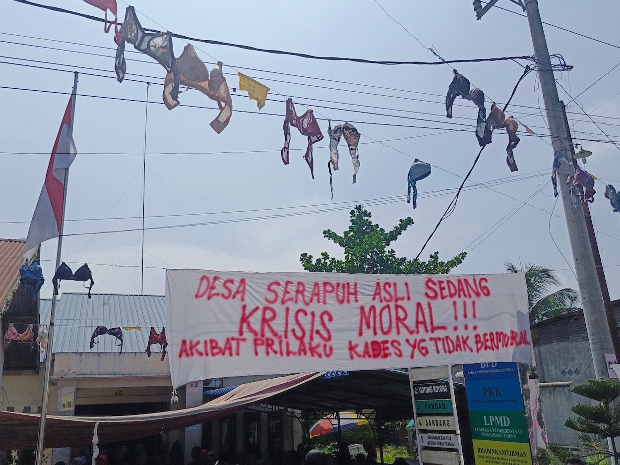 Kamin minta, lanjut Noni, agar NH segera dicopot dari jabatannya sebagai Kades Serapuh Asli. Hal itulah yang diinginkan masyarakat di sana. Sangkin kesalnya, warga menggantungkan bra persis di depan kantor desa itu.