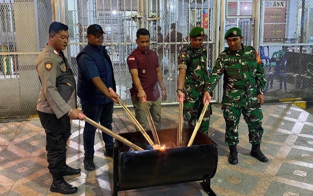 Untuk memastikan terwujudnya situasi aman dan kondusif, sejumlah barang tersebut kemudian disita petugas. Selanjutnya, barang-barang tersebut dimusnahkan bersama pihak BNN, TNI-POLRI.