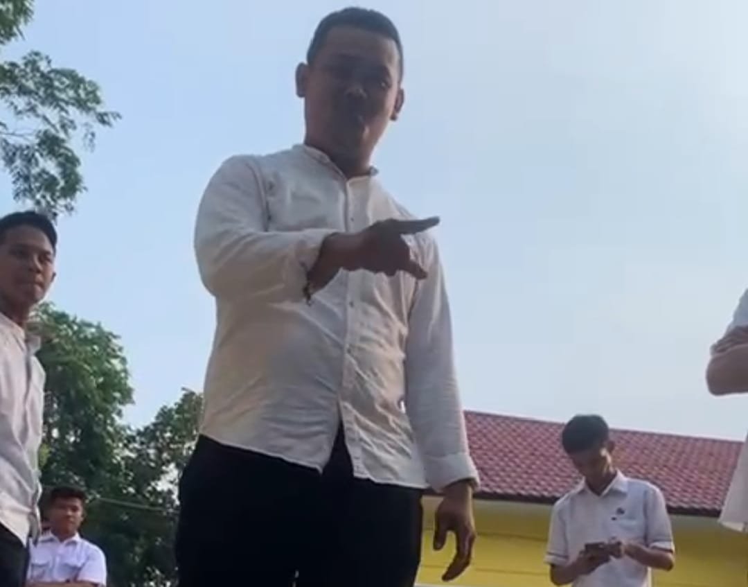 Tenaga honorer Dinas PMD Langkat yang mengancam dan mengajak duel massa yang berorasi di sana.