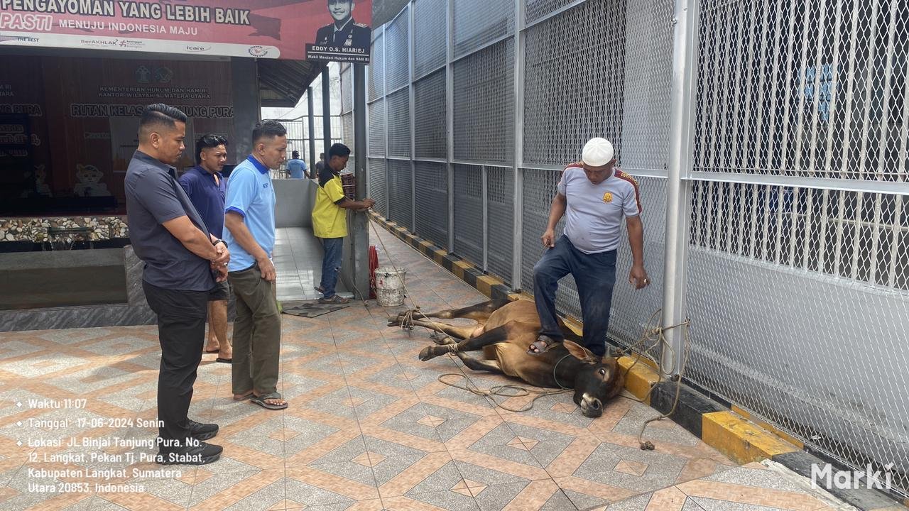 Idul Adha 1445 H, Warga Binaan Rutan Kelas IIB Tanjung Pura Kanwil Kemenkumham Sumut Sembelih Hewan Kurban
