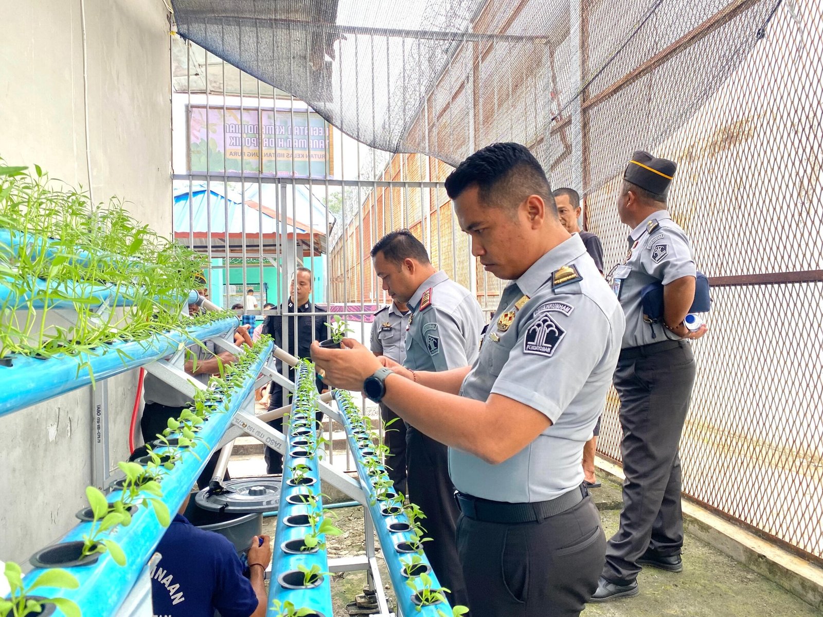 Karutan Tanjung Pura Jimri Nababan beserta pejabat struktural dan jajaran, meninjau langsung kegiatan sarana kemandirian budidaya hidroponik, Senin (23/09/2024) pagi.