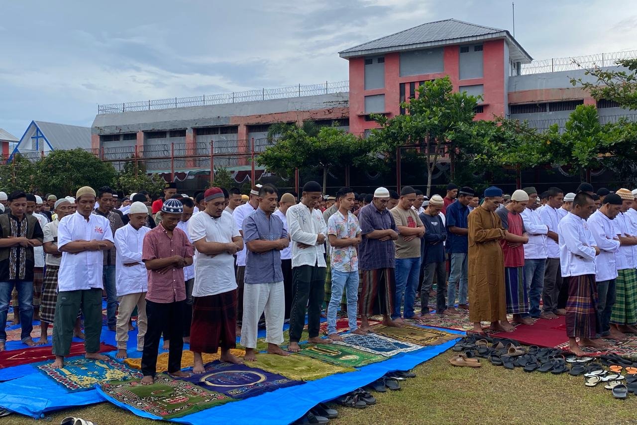 Hinai – Hari Raya Idul Fitri 1445H menjadi salah satu momen yang penuh makna didalam Lembaga Pemasyarakatan Narkotika Kelas IIA Langkat. Di mana, para Warga Binaan Pemasyarakatan (WBP) tidak hanya merayakan hari kemenangan, tetapi juga melaksanakan shalat Ied secara berjamaah.